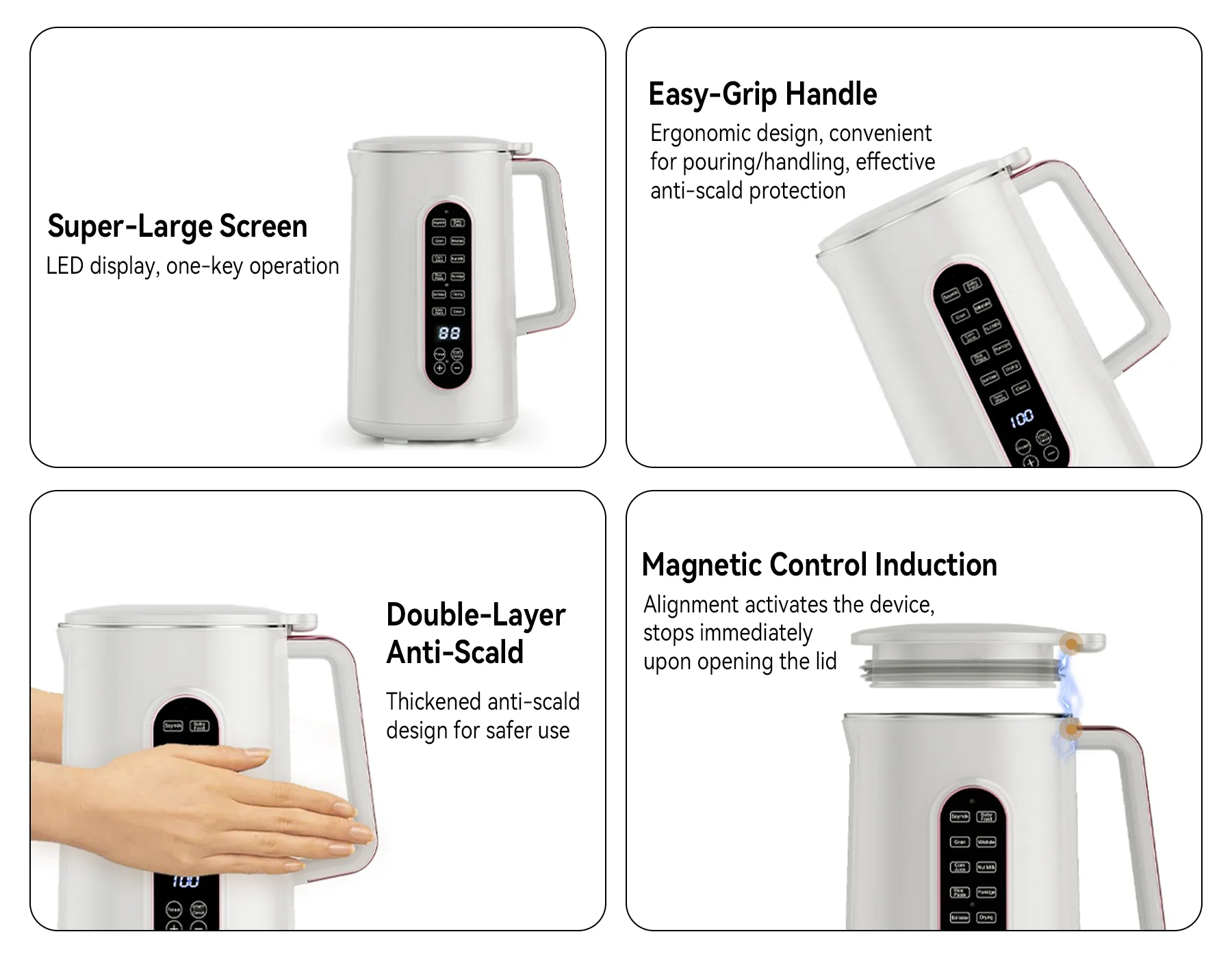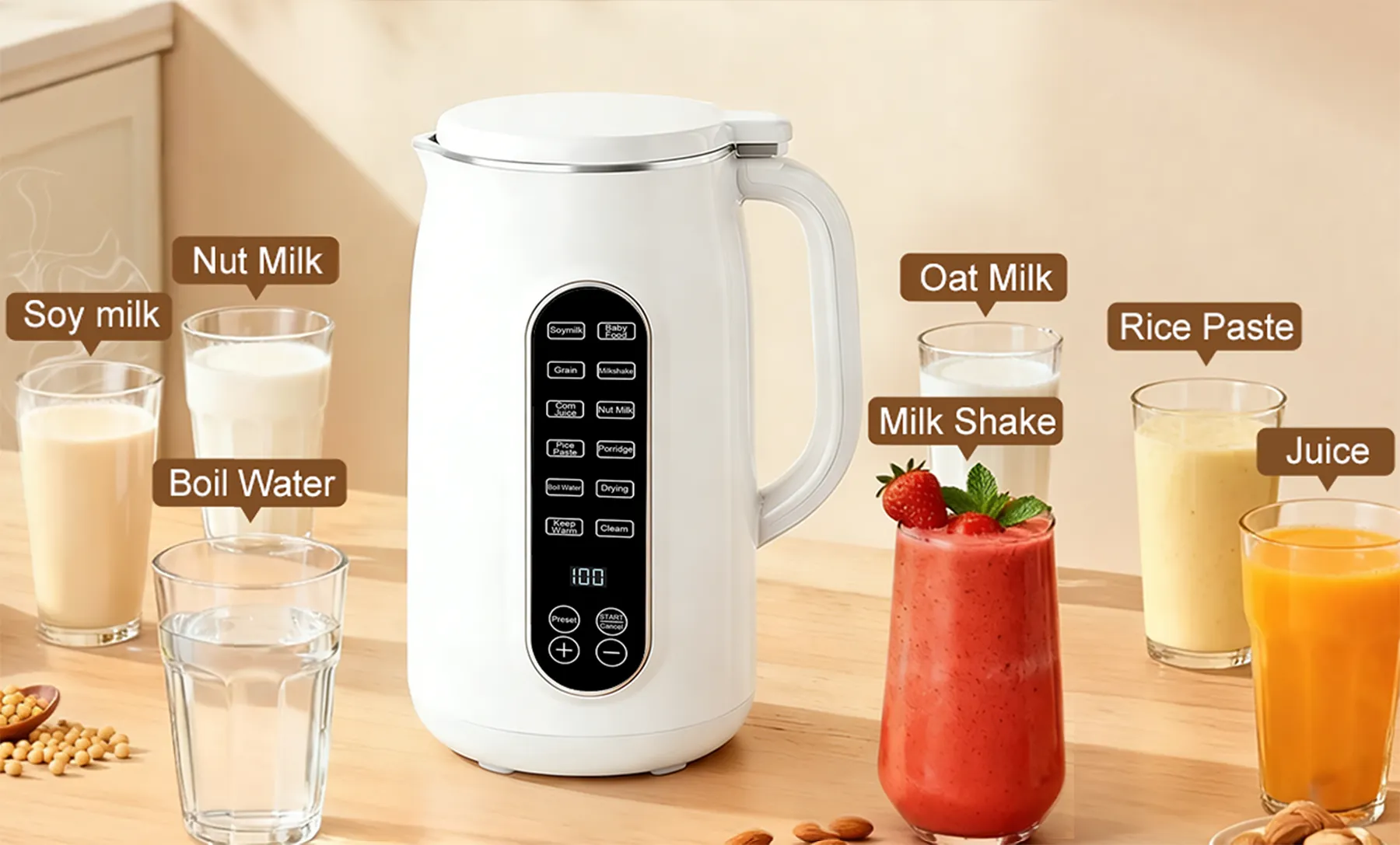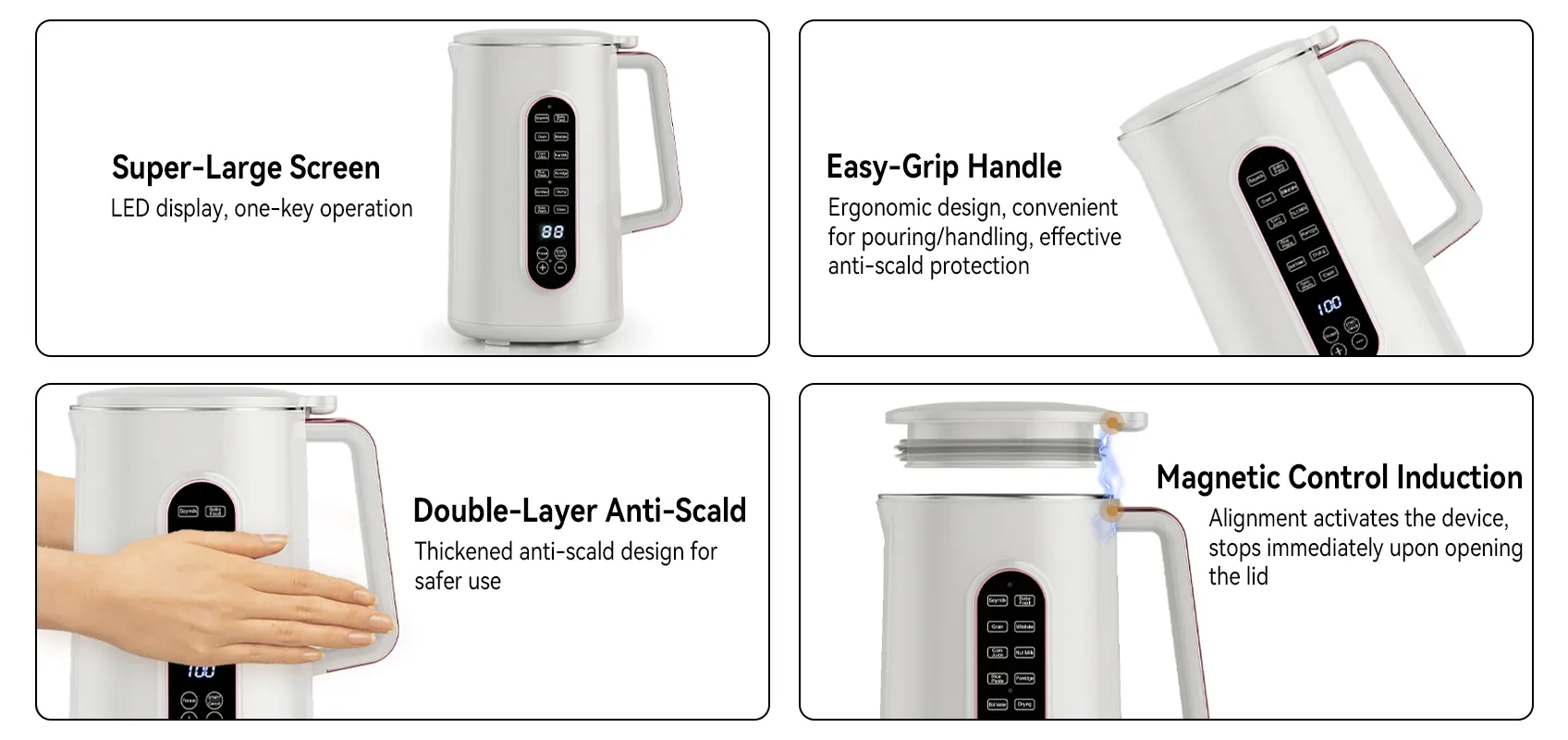 - Smart 12-hour timer – Wake up to fresh soy milk every morning, saving time and adding convenience.