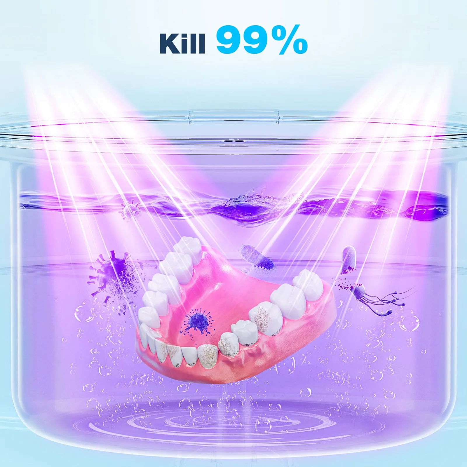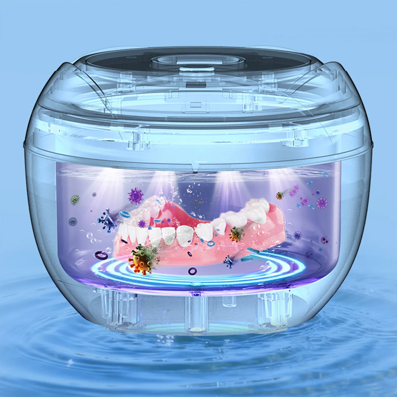 UV Sterilization Effectively Eliminates Bacteria, Viruses, and Harmful Microorganisms from Dentures, Keeping Them Clean and Hygienic. It Prevents Bacteria Growth, Reduces Odors, and Freshens Breath, Giving You Confidence. This Deep Sterilization Ensures Long-Term Hygiene and Protects Your Oral Health from Recontamination.